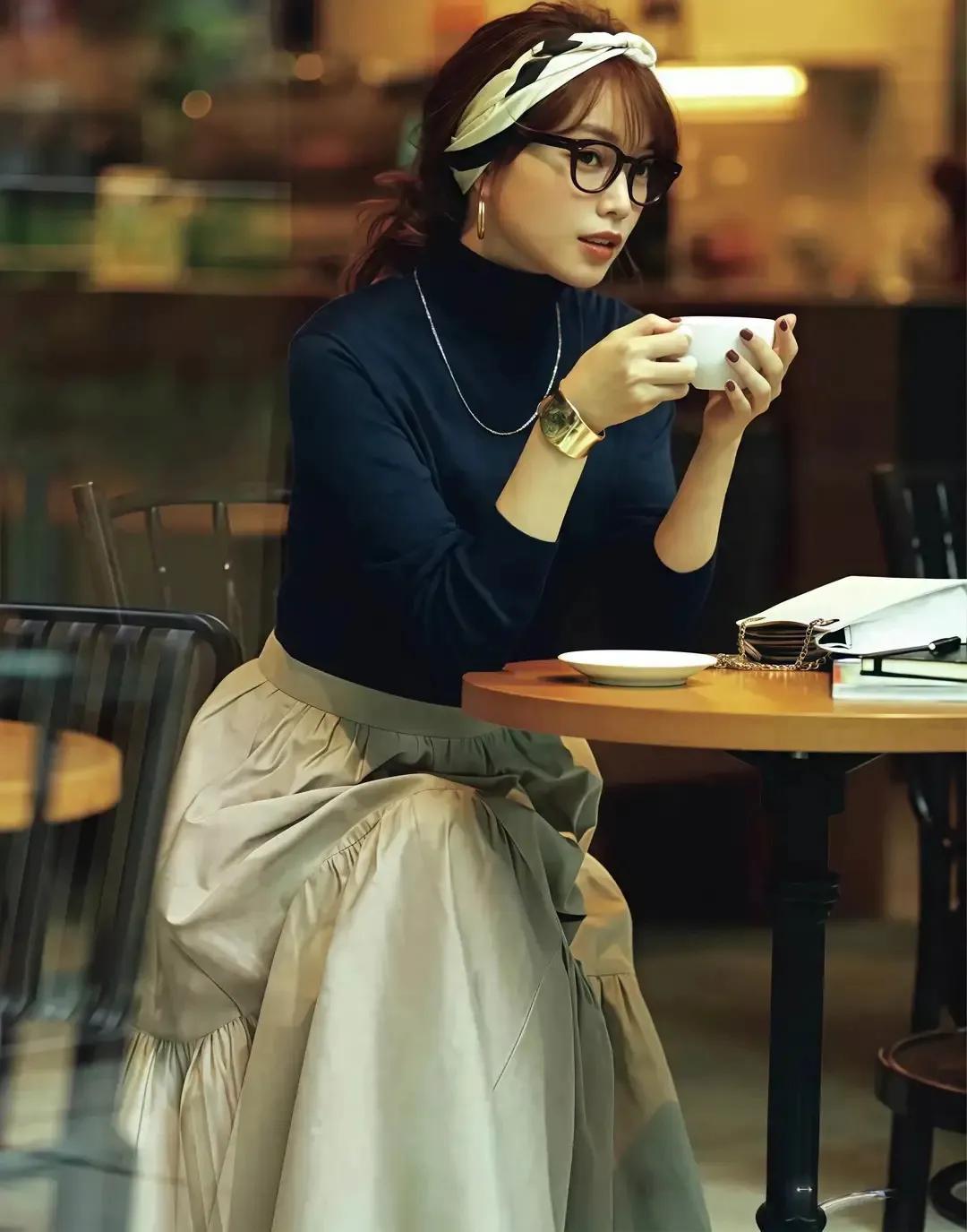 经典的卡其色半身裙穿在身上就很显贵,再加上比较有质感的黑色针织毛衣,就能使得穿搭者变得优雅大方。